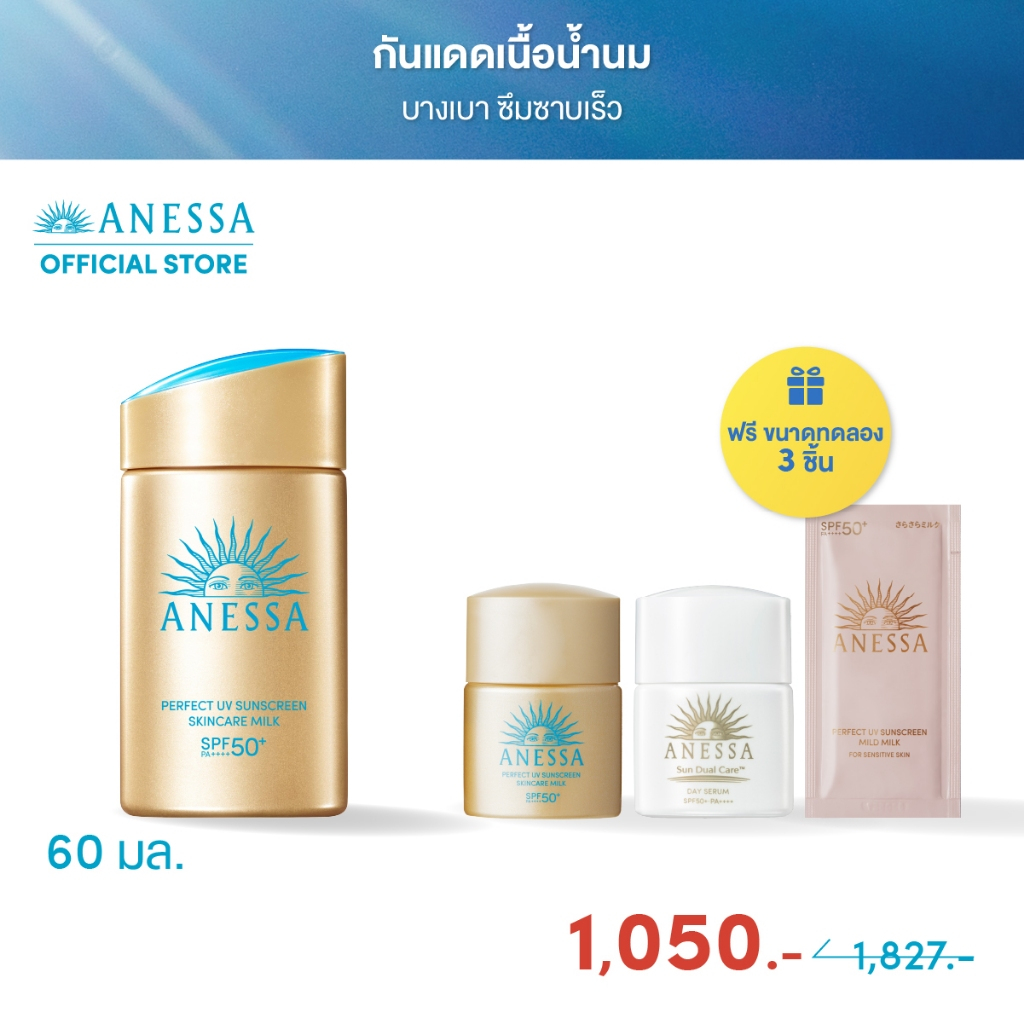 [พิเศษ 1,050฿ เฉพาะ 6-8 มิ.ย.นี้] อเนสซ่า เพอร์เฟค ยูวี ซันสกรีน สกินแคร์ มิลค์ NA SPF50+ PA++++ 60 มล.ฟรี ของขวัญ 3 ชิ้น